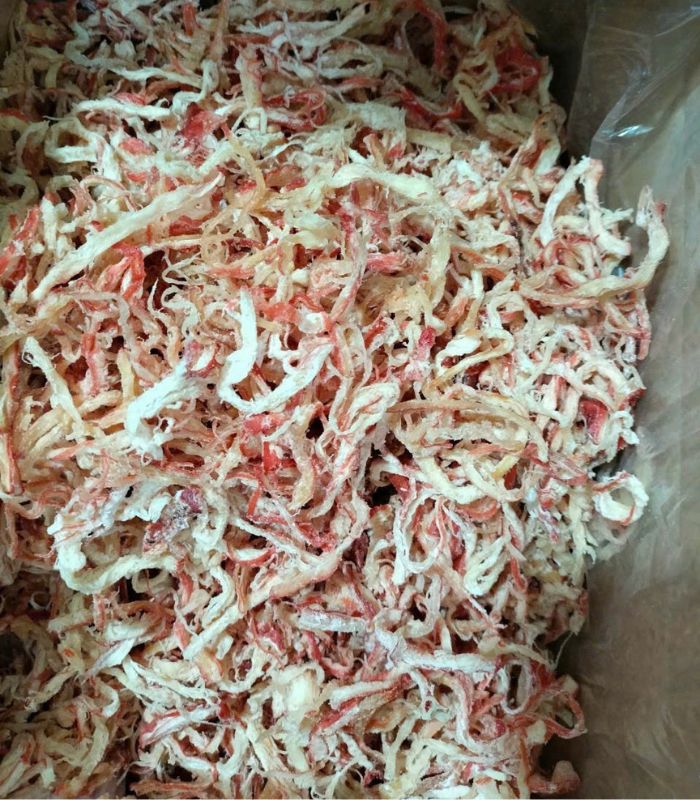 Toàn bộ quy trình không sử dụng phẩm màu, không chất bảo quản, không tẩm vị công nghiệp. Nhờ đó, thành phẩm mực xé sợi vừa thơm tự nhiên, dai ngọt, vừa giữ được lượng đạm cao từ mực nguyên chất – một món ăn vặt không chỉ ngon mà còn giàu dinh dưỡng.